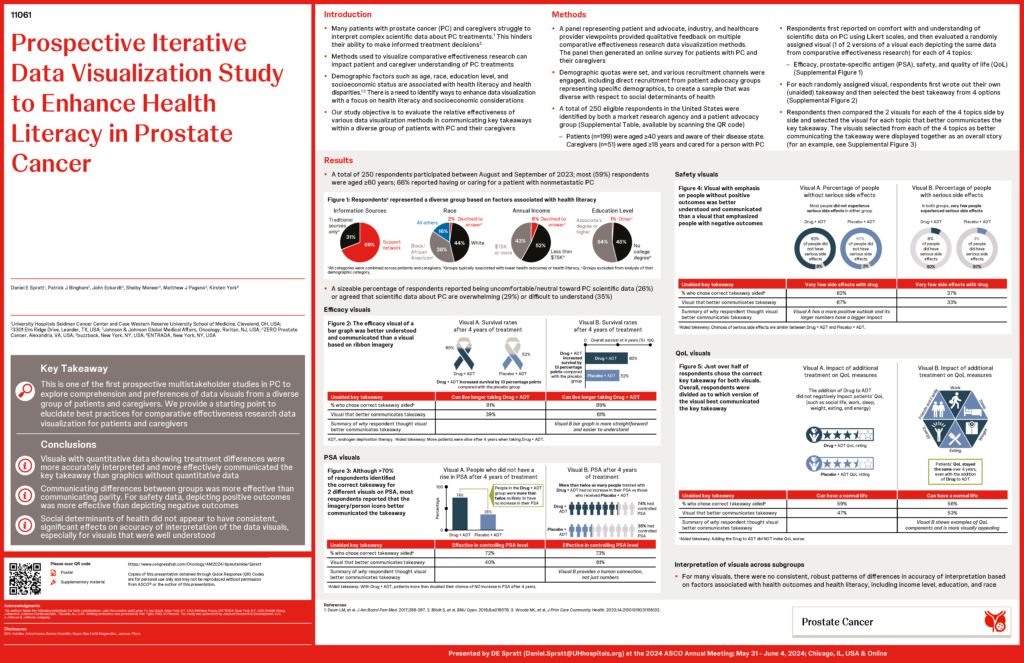 The research, presented at the American Society of Clinical Oncology (ASCO) Annual Meeting in June of 2024, is summarized below, with the full poster at the bottom of this blog. While the research was based on prostate cancer, the findings on visualization can be applied much more broadly — to other health conditions and beyond the healthcare industry.